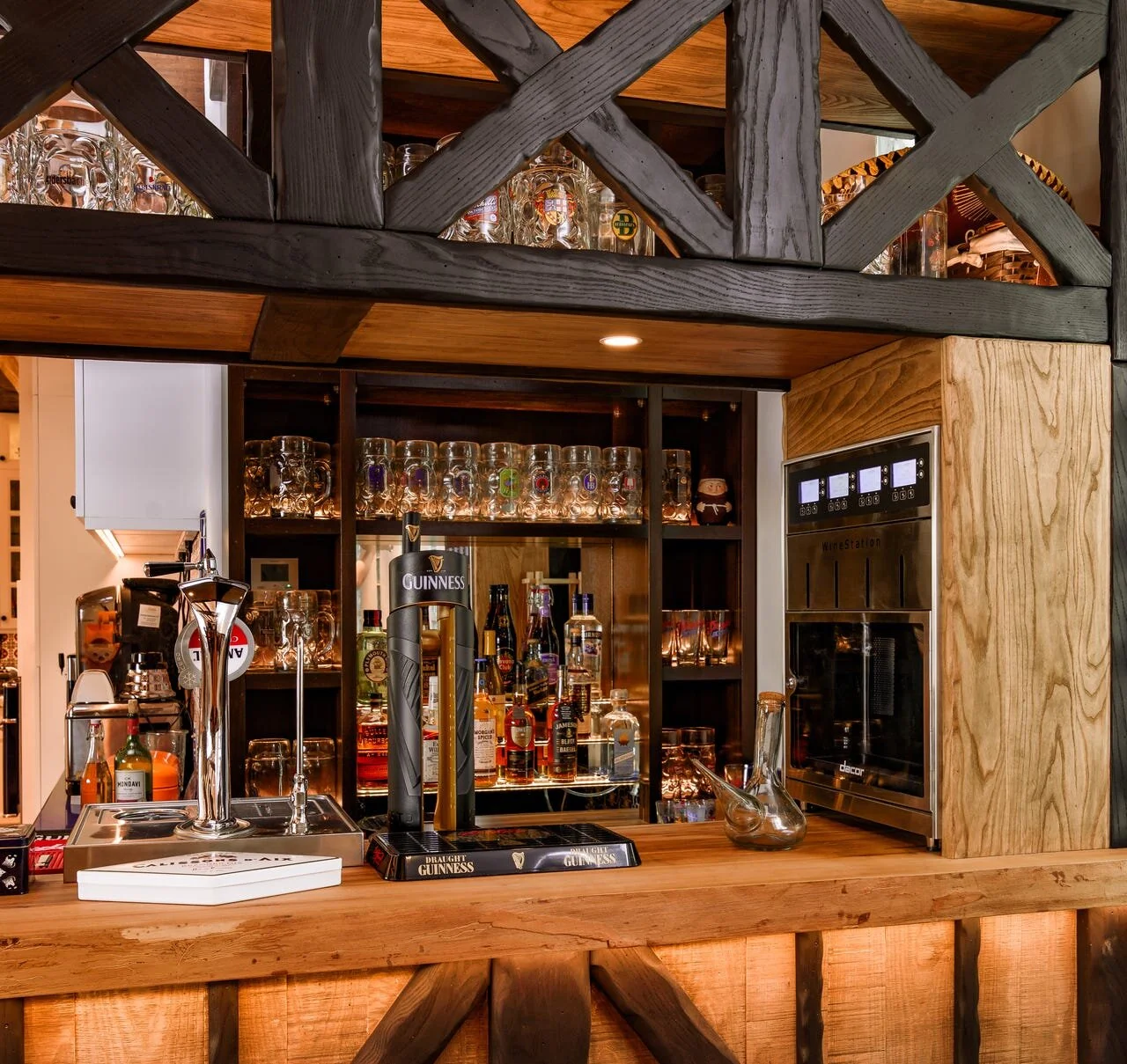 This bar is made of reclaimed wood from an ash tree that once stood on the property.